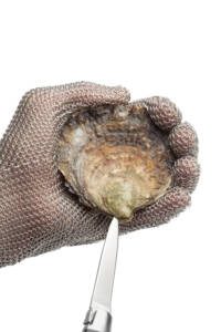 Een oester open je met een oestermesje. Was je handen voor je oesters manipuleert.