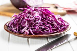 Rode kool bevat weinig suikers, veel vezels en een extreem lage glycemische belasting. Rauwe bereidingen zijn ideaal voor wie suikers wil vermijden. Let wel op bij klassiek gestoofde kool – vaak wordt daar suiker aan toegevoegd. Kies dan voor een versie met appel of zoete ui als natuurlijke zoetmaker, of laat de suiker achterwege: de smaak blijft even rijk.